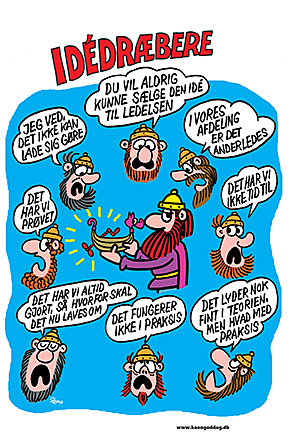Idédræbere er de små kommentarer og reaktioner, der kan bremse selv den mest lovende tanke. De viser sig ofte i gode intentioners forklædning, men ender alligevel med at tage modet fra dem, der forsøger at bidrage. Når nogen siger, at “det har vi prøvet før”, eller at “det kommer aldrig til at virke”, lukker rummet sig stille omkring idéen, før den overhovedet får lov at udfolde sig. Selv et enkelt suk eller et løftet øjenbryn kan være nok til at få nogen til at tie stille og lade være med at byde ind igen.